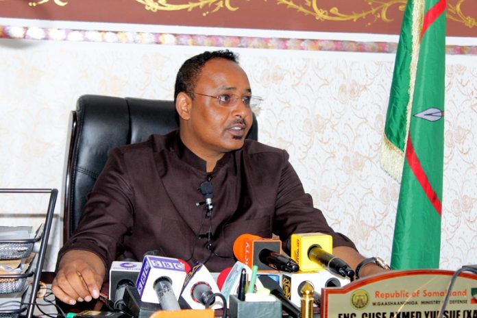 Hargeysa (Dawan)- Wasiirka Gaashaandhiga Somaliland Eng. Ciise Axmed Yuusuf (Xawar) ayaa shir jaraayid oo uu ku qabtay xafiiskiisa faahfaahin kaga bixiyey imaatinka xoghayaha difaaca dawlada Ingriiska oo maalintii dorraad dalka soo gaadhay kaasi oo la kulmay wasiirka gaashaandhiga, madaxwaynaha jamuuriyada Somaliland Muuse Biixi Cabdi iyo madax kale oo ka mid ah Xukuumada.