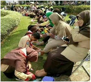 Mid ka mid ah dugsiyada dalka Indonisiya ayaa sameeyay maalin gaar u ah hooyooyinka dhalayay ardayda dugsiga dhigta . Dugsigan ayaa maalintaasi waalidka ku marti qaada dugsiga waxayna u diyaariyaan goobaha ay faadhiistaan iyo biyo iyagoo ardayda debedda usoo saara isagoo mid kastaa hooyadii u maydha cagaha.