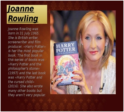 Waxase Joanne Rowling ay ku fikirtay inay qoraalo samayso waayo arinkaasi ayay hiwaayad u lahayd. Waxaana ay bilowday qoraalka iyadoo soo saartay silsilad buugaagta Hary Poter oo aad loo jeclaaday qisaska ku qoran.
