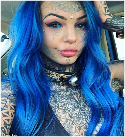 Sida lagu daabacay wargeyska dailymail gabadhan ayaa doonaysay inay gebi ahaanba midabkeeda u bedesho buluug, iyadoo carabkeedana laba qaybood laga dhigay oo midabaysan. Waxaana loo dalooliyay dhegaha dhamaan jidhkeedana waxa lagu sameeyay dhalan rog badan, iyadoo lagu sameeyay sawiro tatu midab ah oo gaadhay 200.
