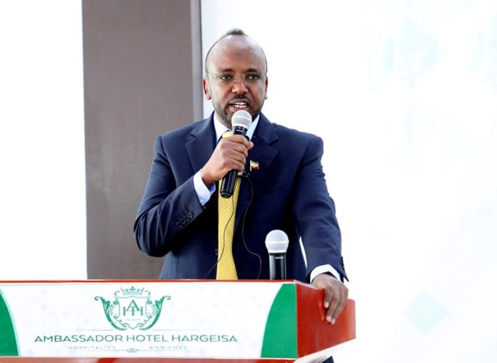 Farxaan Aadan Haybe, oo khudbad ka jeediyayay munaasibad lagu daah-furayay qorshaha hay’adda shaqaalaha dawladda Somaliland ee shanta sanadood ee soo socda, oo shalay lagu qabtay hudheelka Ambassador ee magaaladda Hargaysa.