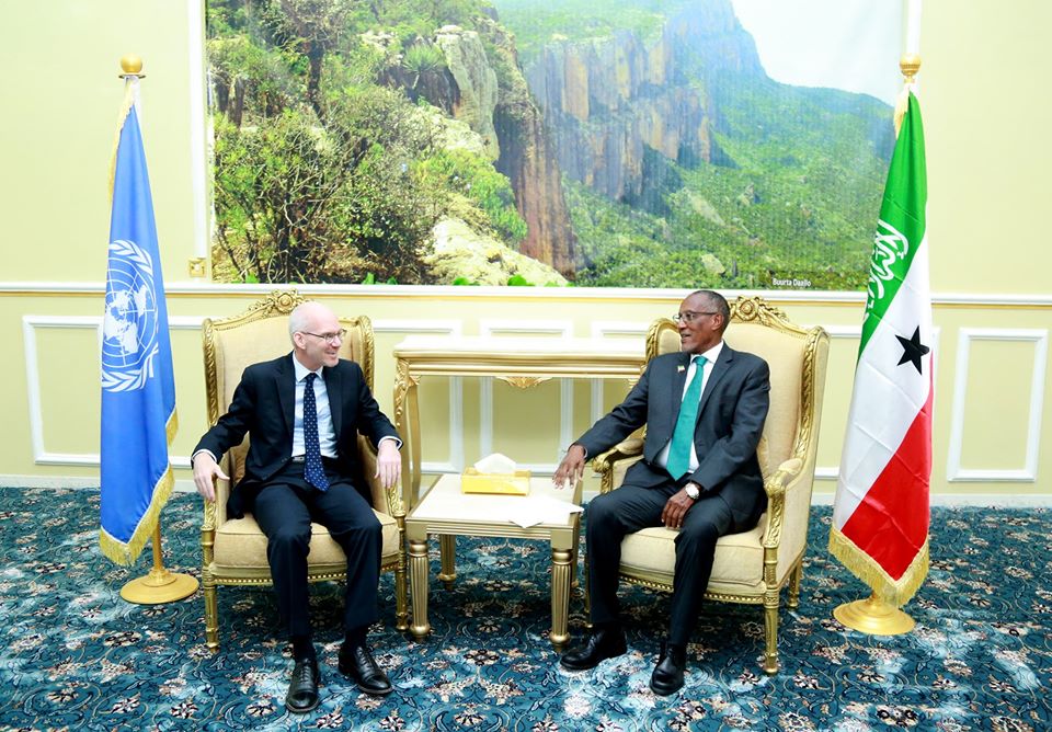 Hargaysa (Dawan): Madaxweynaha Jamhuuriyadda Somaliland Muuse Biixi Cabdi, ayaa  xafiiskiisa ku qaabilay wefti ballaadhan oo uu hoggaaminayo wakiilka gaarka ah ee xoghayaha guud ee qaramada midoobay u qaabilsan Somaliland iyo Soomaaliya Ambassador James Swan.
