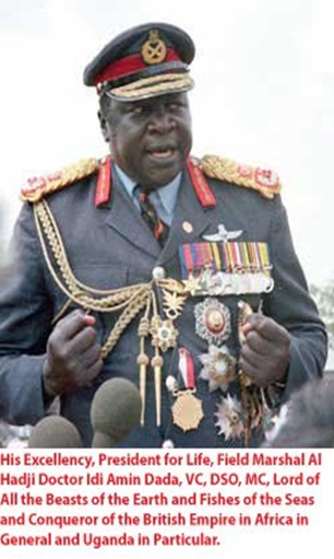 Sida la sheegay Idaacadda ayaa marka ay madaxweynaha marka ay sheegayo magaciisa ka horaysiin jirtay  derejooyink badan waxaana ay ugu dhowaaqi jirtay: “ Madaxweynaha Jamhuuriyadda Ugaandha, Cimrigiisu ha raage Mudane, Dr. Marshall, Professor Haji “Idi Amin Dada” oo ah halyay Ka guulaystay Boqortooyada Ingiriiska” ,  Intaasi marka laga horaysiiyo ayaa la sheegi jiray arrimaha warkiisa maalintaasi ku saabsan yahay iyo hawsha uu qabtay “His Excellency President Lifelong Marshall, Professor , Haji.Dr “Idi Amin” Conqueror of the British Empire. Iidi Amin wuxu ku dhintay Jidda sanadkii 2003.