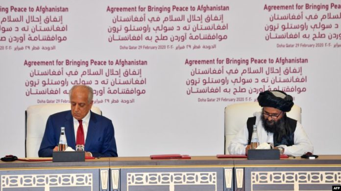 Doha (Dawan)- Mareykanka ayaa kooxda Taliban la saxiixday heshiis taariikhi ah kaasi oo u gogol xaadhi kara in ciidamada shisheeye ay ka baxaan dalka Afghanistan 14-ka bilood ee soo socda taasi oo soo afjareysa colaadda 18 sano jirsatay ee dalkaasi.