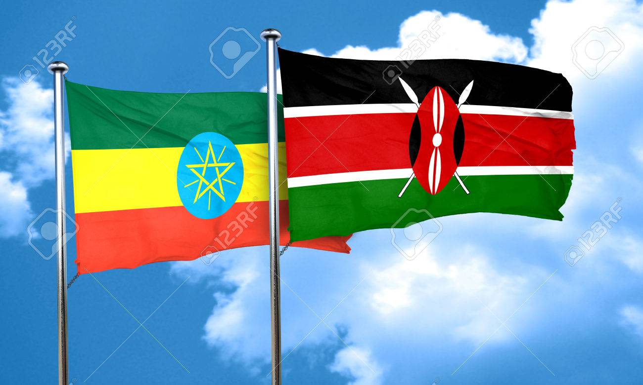 Ethiopia flag with Kenya flag, 3D rendering