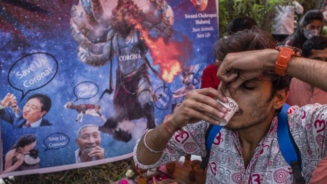 Hindiya (Dawan)- Caasimadda Hindiya ee New Delhi, waxaa Sabtidii lagu qabtay munaasabad lagu cabbayo kaadida lo’da si looga hortaggo cudurka safmarka ah ee Coronavirus, waxaana xafladda soo agaasimay urur u doodo xuquuqda dadka Hinduuga ee dalkaas.