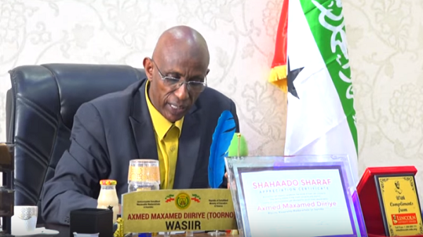 Sawirka wasiirka waxbarashada iyo Sayniska Somaliland mudane Axmed Maxamed Diiriye (Axmed Toorno), xuquuqda sawirka Tvga Qaranka Somaliland