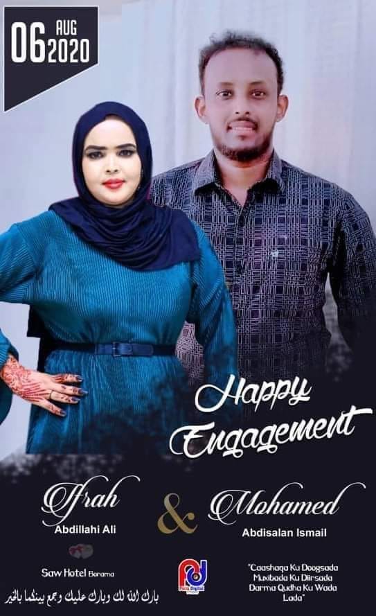 Dhammaan dadkaasi waxaa ay hanbalyo iyo boogaadin u dirayaan meherka Maxamed Cabdi Ismaaciil iyo marwaddiisa Ifraax Cabdillaahi Cali oo meherkoodu ka qabsoomay Hutel Sow ee magaalada Borama 6/8/2020 waxaanay ALLE uga baryayaan in meherkooda uu ku gaadhsiiyo aqal wiil iyo caano nabad iyo caano noqda oo lagu badhaadho.