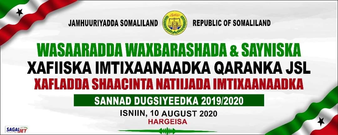 Hargeysa (Dawan) Xafiiska imtixaanadka Qaranka Somaliland, ayaa hada shaaca ka qaaday in maalinta Berri (10.08.2020) lagu dhawaaqi doono natiijada Imtixaanaadka Shahaadiga ah ee Fasallada 4aad ee Dugsiyada sarre.