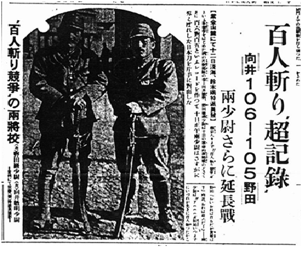 Labadan sarkaal oo magacyadoodu kala ahayeen Toshiaki Mukai and Tsuyoshi Noda waxay ahaayeen saraakiil dhalinyaro ah oo derejda gaashaanle dhexe ah waxayna ka tirsanaayeen guutada Toyama. Tartankaasi ayaa dhacay mudadii Japan weerarka ku hayay dadkii China.
