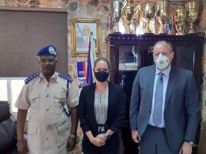 Dr Fabian Loewenberg oo ah Ku-xigeenka madaxa EUCAP oo uu weheliyo la-taliyaha dhanka Istaraatijiyadda EUCAP, Suzanne Frankenmolen, ayaa shalay la kulmay taliyaha Ciidanka Booliska Somaliland Sarreeye Guuto Maxamed Aadan Saqadhi Daba-gale.