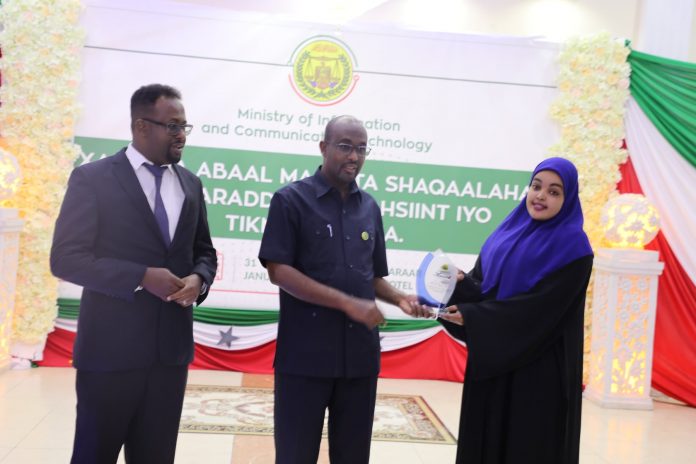Hargeysa(Dawan)-Wasaaradda Isgaadhsiinta iyo Tiknoolajiyada Somaliland abaal, ayaa marinno ku guddoonsiisay Shaqaalihii ugu shaqada wanaagsanaa sanadkii ina dhaafay ee 2020, munaasibad maanta lagu qabtay Magaalada Hargeysa, taasoo ay ka qaybgaleen Masuuliyiinta Wasaaradda, Guddoomiyeyaasha Hay’adda Shaqaalaha iyo Komishanka Maamul-wanaaga.