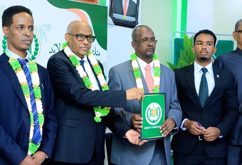Hargeysa (Dawan)- Gudoomiyaha Baanka Dhexe Eng Cali Cabdillahi & Agaasimaha Guud Mr Mukhtaar Cabdi Quule oo xilkii kala wareegay masuuliyiinta hore ayaa ballanqaaday inay ku ilaalin doonaan qiimaha sarifka shillinka Somaliland heerka uu taagan yahay, isla markaana horumarka baanka gaadhay sii balaadhin doonaan.