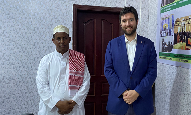 Hargeysa-(Dawan):-Wasiirka Wasaaradda Diinta iyo Awqaafta Jamhuuriyadda Somaliland, Sheekh Cabdirisaaq Xuseen Albaani ayaa kulan la qaatay Wakiilka Dawladda Ingiriiska ee Somaliland Mr, Stuart Brown.
