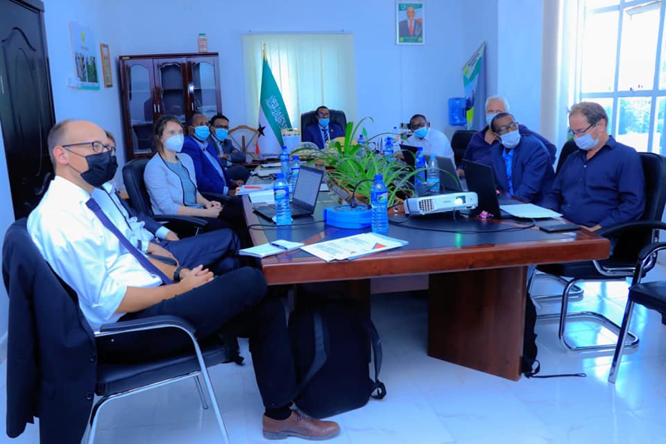 Hargeysa (Dawan) Wasiirka wasaaradda huromarinta beeraha Somaliland, Mudane Maxamed Xaaji Cismaan, iyo agaasimaha guud ee wasaaraddaasi, mudane Rooble Cabdi Muuse ayaa qaabilay wefti ka socday bangiga horumarinta ee dalka Jarmalka ee KFW oo uu hoggaaminayay madaxa Bangiga ee bariga Afrika Florian Rabe.