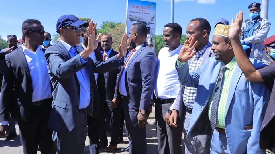 Madaxweynaha iyo waftigiisa ayaa waxaa magaalo xuduudeeda Tog-wajaale kusoo dhaweeyay wasiirka arrimaha gudaha Somaliland Maxamed Kaahin Axmed,  wasiirka warfaarinta Saleebaan Yuusuf Cali Koorre, wasiirka xannaanada xoolaha Siciid Sulub Maxamed, saraakiil kale oo xukuumadda Somaliland ka tirsan.