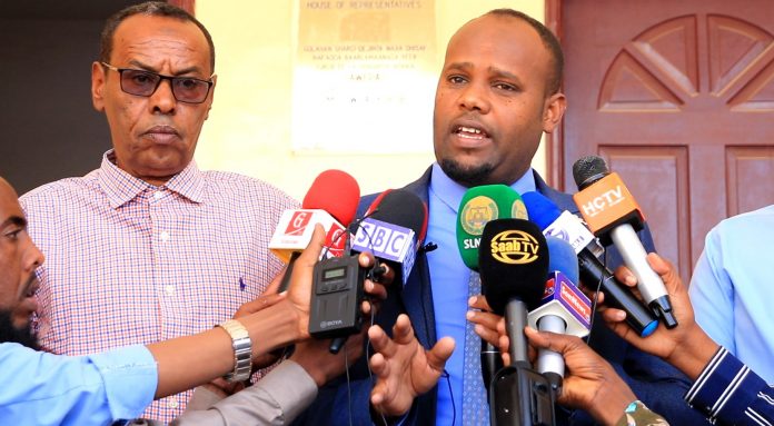 Xoghayaha Guud ee Golaha Wakiilada JSL Cabdirisaaq Siciid Ayaanle iyo Maareeyaha Telefishanka Qaranka Cabdirisaaq Cismaan oo labada Hay’adood metelayay ayaa warbaahinta la haďlay markay shirkooda dhamaysteen.”