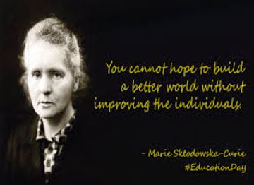Waxaa lagu xusuusta Marie inay ahayd qofka keliya ee laba jeer ku guulaystay abaal marinta Nobel Price oo laba maado ah Chemistry iyo phiysigis.  Sidaas darteed mar waa gabadhii u horaysay ee macalimad Jaamacad ka noqota, mar kalena  waa qofkii u horeeyay ee laba Maado oo kala duwan mid kasta ku guulaysta abaal marinta Nobel Price. Dadaalka qofka ku jira ayaa gaadhsiiya guulaha.  Weedhaha lagu xasuusto waxa ka mid ah :” Ma filaysid kartid inaad dhisato adduun ka wanaagsan adiga oo aan hagaajin shakhsiyaadka”.