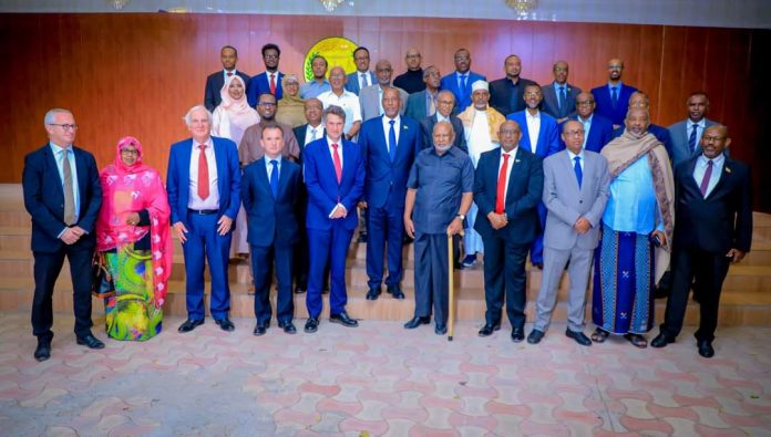 Hargeysa (Dawan) – Madaxweynaha Jamhuuriyadda Somaliland Md Muuse Biixi Cabdi oo uu wehelinayo Madaxweyne-ku-xigeenkiisa Md Cabdiraxmaan Cabdillaahi Ismaaciil (Saylici), ayaa kulan casho-sharaf iyo sagootin ah qasriga Madaxtooyadda ugu sameeyey caawa weftiga ka socda Baarlamaanka Ingiriiska ee uu hoggaamiyo xildhibaan Given Williamson oo maalmihii u dambeeyey ku sugnaa dalka.