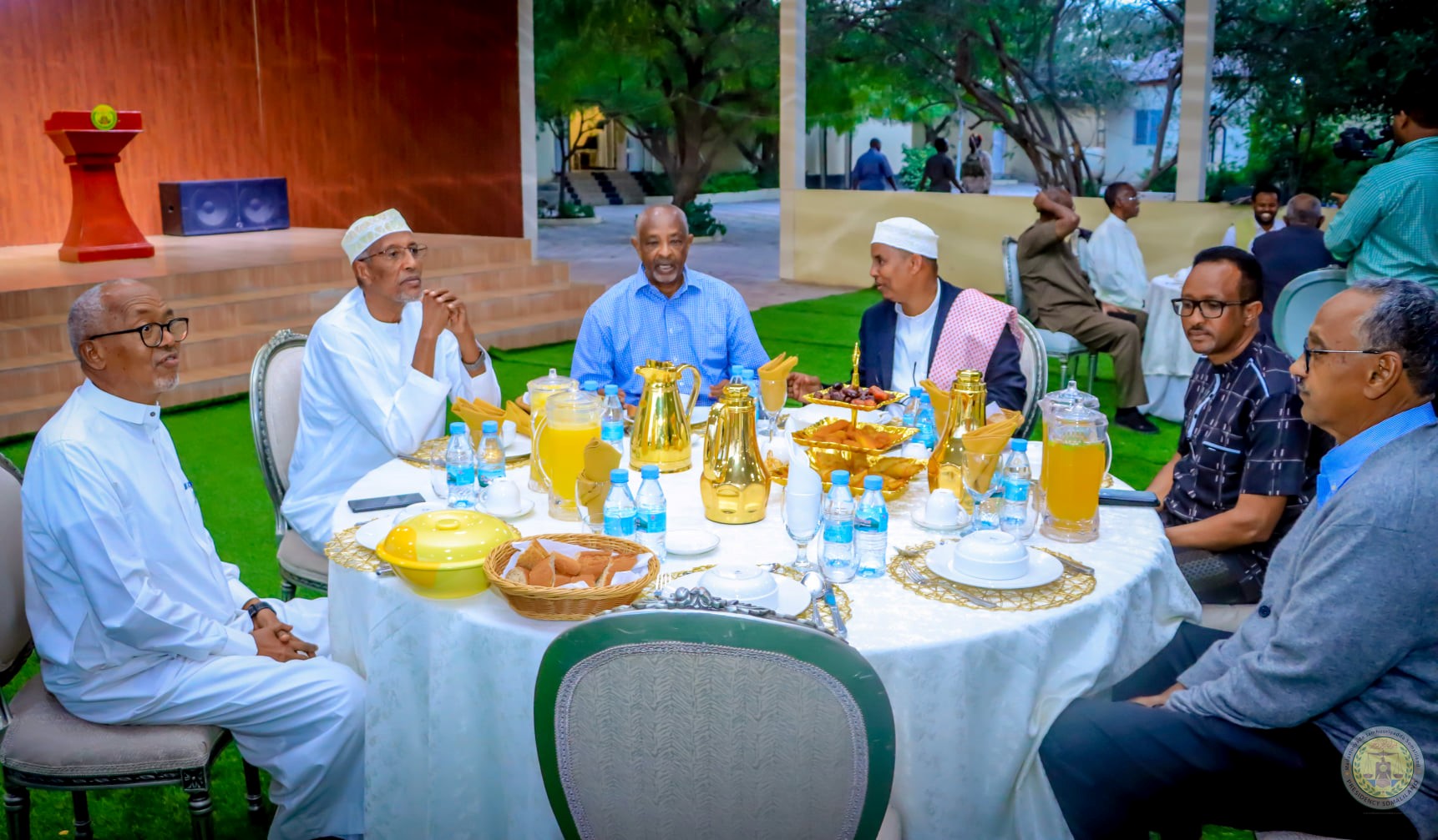 Geesta kale guddoomiyaha rugta ganacsiga Jamhuuriyadda Somaliland Jamaal Caydiid Ibraahim, waxana uu si kal iyo laab ah madaxweynaha ugaga mahadceliyey sida uu xilka iskaga saaray in qaranku isku tashado, gurmad heer qaran ahna loo fidiyo ciddii mushkiladdii dabku saamaysay, isaga oo sidoo kalena ganacsatada heerarkeeda kala duwan ku ammaanay sida ay usoo ajiibeen kulanka, ugana qayb qaateen ururinta qaadhaanka.