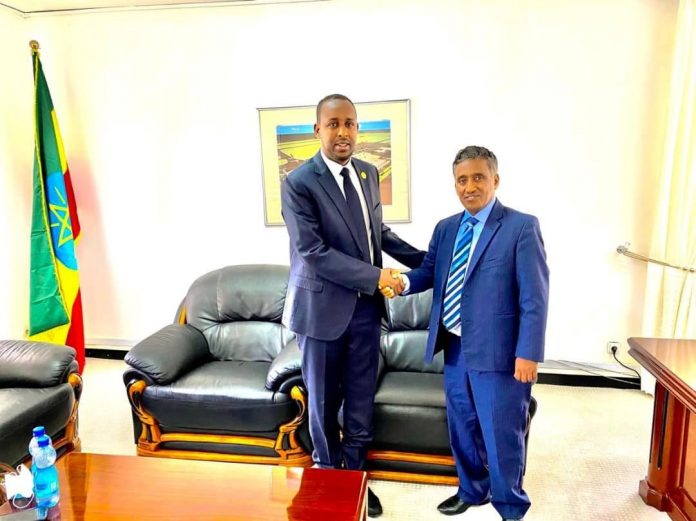 Addisababa (Dawan)- Mareeyaha Hay,ada Duulista iyo Madaarada Somaliland Cumar-Sayid Cabdilaahi Aadan oo socdaal shaqo ku jooga wadanka Itoobiya ayaa kulan la qaatay Agaasimaha guud ee Hay,ada duulimaadyada rayidka ee itoobiya (Ethiopian Civil Aviation Authority- ECAA -) Mr Gethachaw Mengiste.