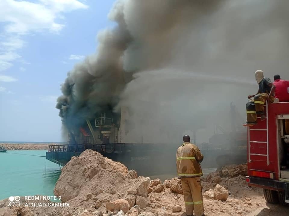 Markabka gubtay oo ay lahayd shirkada Darwiish Constructor, oo madhna isla markaana aanay wax xamuul ahi saarnayn ayay damintiisa kala qayb qaateen ciidanka dabdamiska garoonka diyaaradaha ee magaalada Berbera.