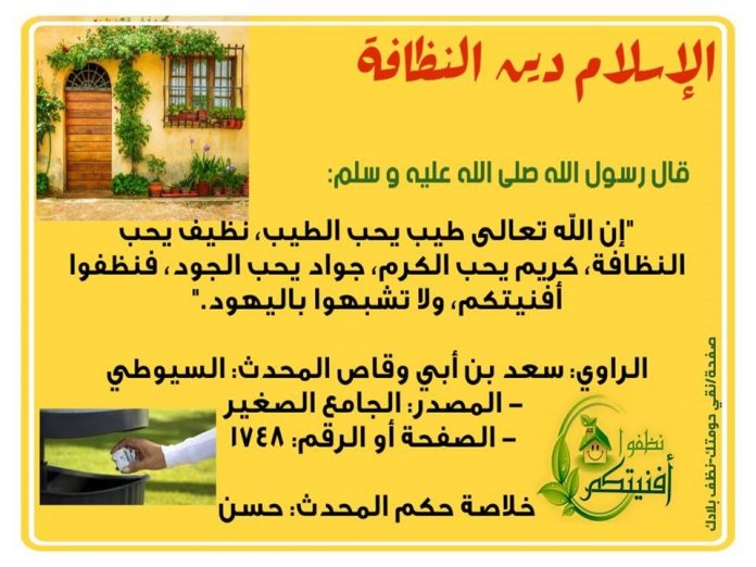 Waxa kale oo Rasuulku (scw) uu amray dadka ilaalinta nadaafadda guryaha sida uu cadaynayo xadiiskan “ Ilaahay wuu wanaagsan yahay wanaagana wuu jecel yahay, waana nadiif, nadaafaddana wuu jecl yahay, nadiifiya daaradihiina iyo guriyihiina, hana isu eekaysiinina