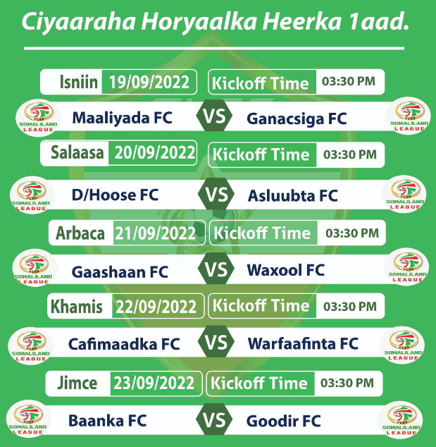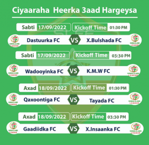 Jadwalka Kulamada Horyaallada Heerka 1aad, 2aad iyo 3aad oo la soo Saaray