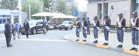 Gen Saqadhi markii uu ka degay Garoonka Addis ababa wuxuu salaan sharaf ka qaatay Cutub ka mida Ciidanka Booliska Fadaralka Ethiopia.