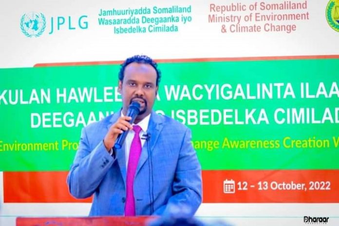 Burco (Dawan): Agaasimaha Guud ee wasaaradda Deegaanka iyo Isbedelka Cimilada Somaliand Maxamed Cabdilaahi Ducaale, ayaa shalay magaaladda Burco ka furey kulan hawleedka Wacyigalinta Illaalinta Deegaanka iyo Isbadelka Cimilada.