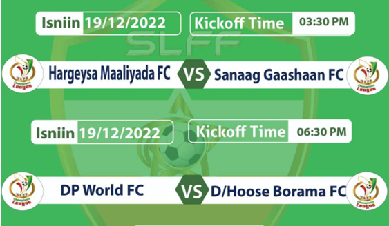 Barnaamijyadaciyaaraha Jadwalka Kulamada Horyaalka Horyaallada (Somaliland Champions League) By Wargeyska Dawan - December 19, 2022 0 830 FacebookTwitterPinterestWhatsApp Xidhiidhka kubadda cagta Somaliland ayaa soo saaray jadwalka kulamada horyaalka horyaallada Somailand e todobaadkan, waxaanu u dhignaa sidan: