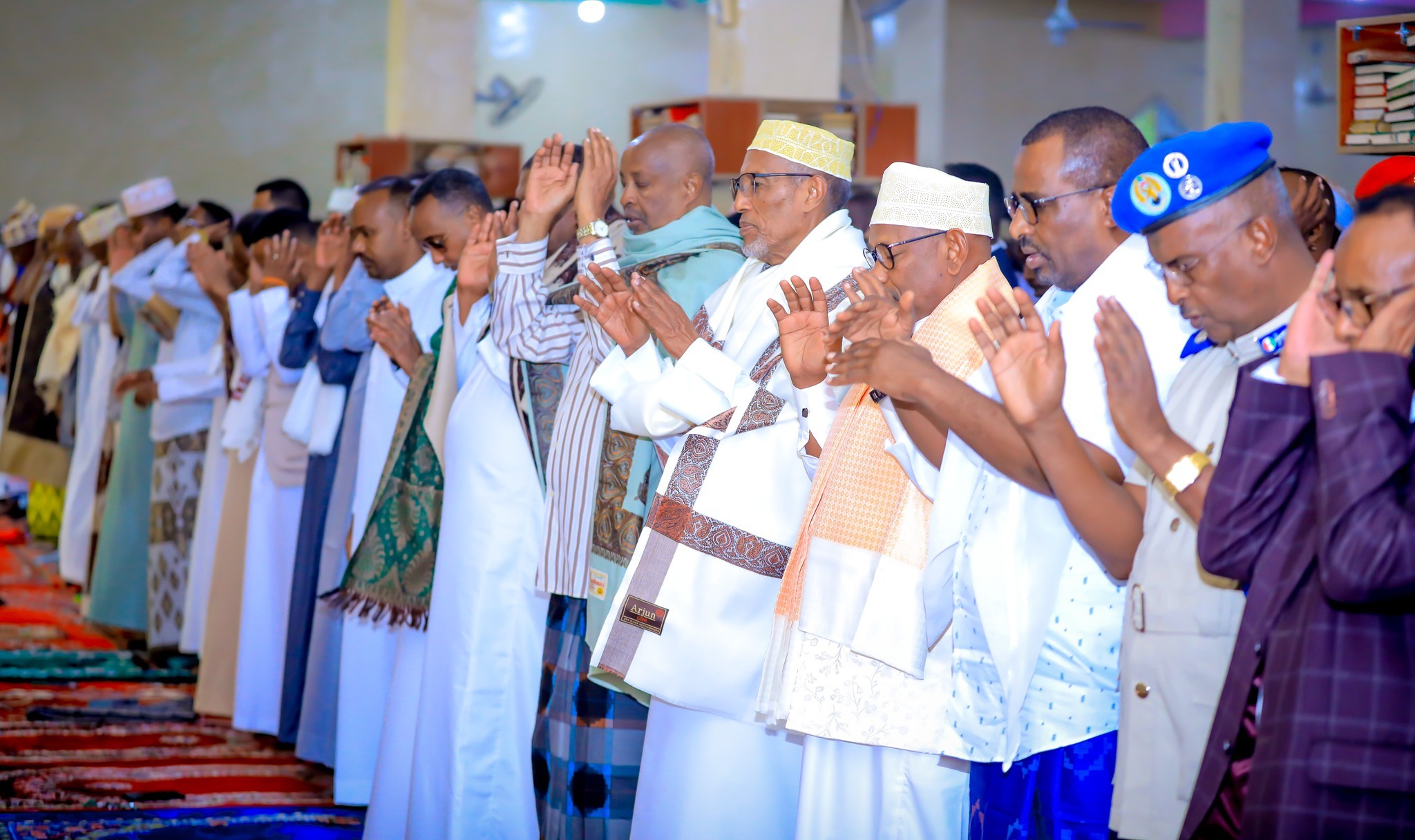 Madaxweyne Muuse Biixi Cabdi oo ay wehelinayaan guddoomiye-ku-xigeenka golaha wakiillada, qaar kamid ah taliyeyaasha kala duwan ee ciidamada, xildhibaanno, xubno kamid ah golaha wasiirrada iyo masuuliyiin kale, ayaa dadweynaha kula tukaday masjid-jaamaca Hargeysa salaadda ciidal-Adxaha.