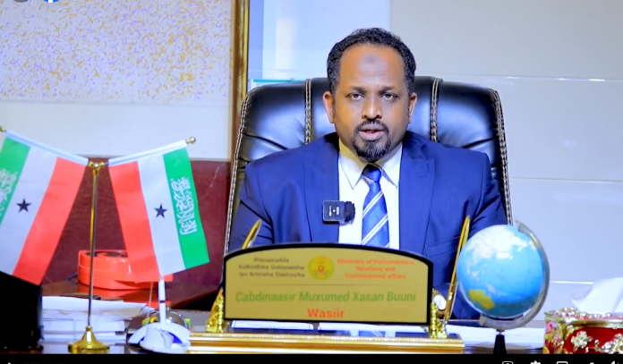 Hargeysa (Dawan)- Wasiirka Wasaarada Xidhiidhka Golayaasha iyo arrimaha Dastuurka Jamhuuriyadda Somaliland mudane Cabdinaasir Muxumed Xasan Buuni ayaa jawaab ka bixiyay hadallo ka soo yeedhay Madaxweynaha Dawladda Soomaaliya Xasan Sheekh Maxamuud.