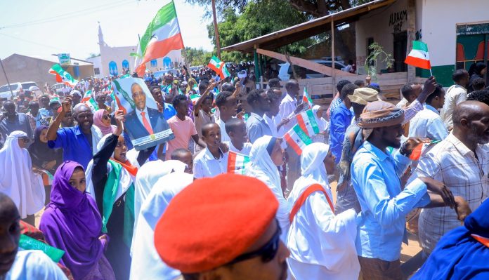Madaxda degmada, xubno kamid ah hoggaanka dhaqanka, dhakhaatiir kasoo jeedda deegaan, qaar kamid ah golaha wasiirrada, siyaasiyiin iyo haldoor kale oo halkaas ka hadlay, ayaa madaxweynaha kusoo dhaweeyey degmada, waxana ay si cad u sheegeen in shacabka ku dhaqan degmadu taageero buuxda u hayaan xisbiga KULMIYE iyo murrashaxiintiisa jagooyinka madaxweyne iyo madaxweyne-ku-xigeen.