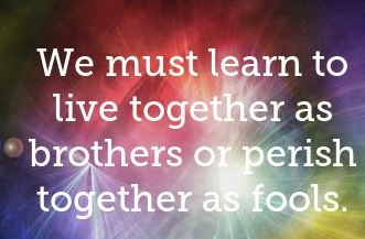 “ We must learn to live together as bothers or perish together as fools “ “ Waa in aa baranaa sida loo wada noolaado inagooo walaalo ah, ama waa in aan sida nacasyada u wada dhimanaa “.