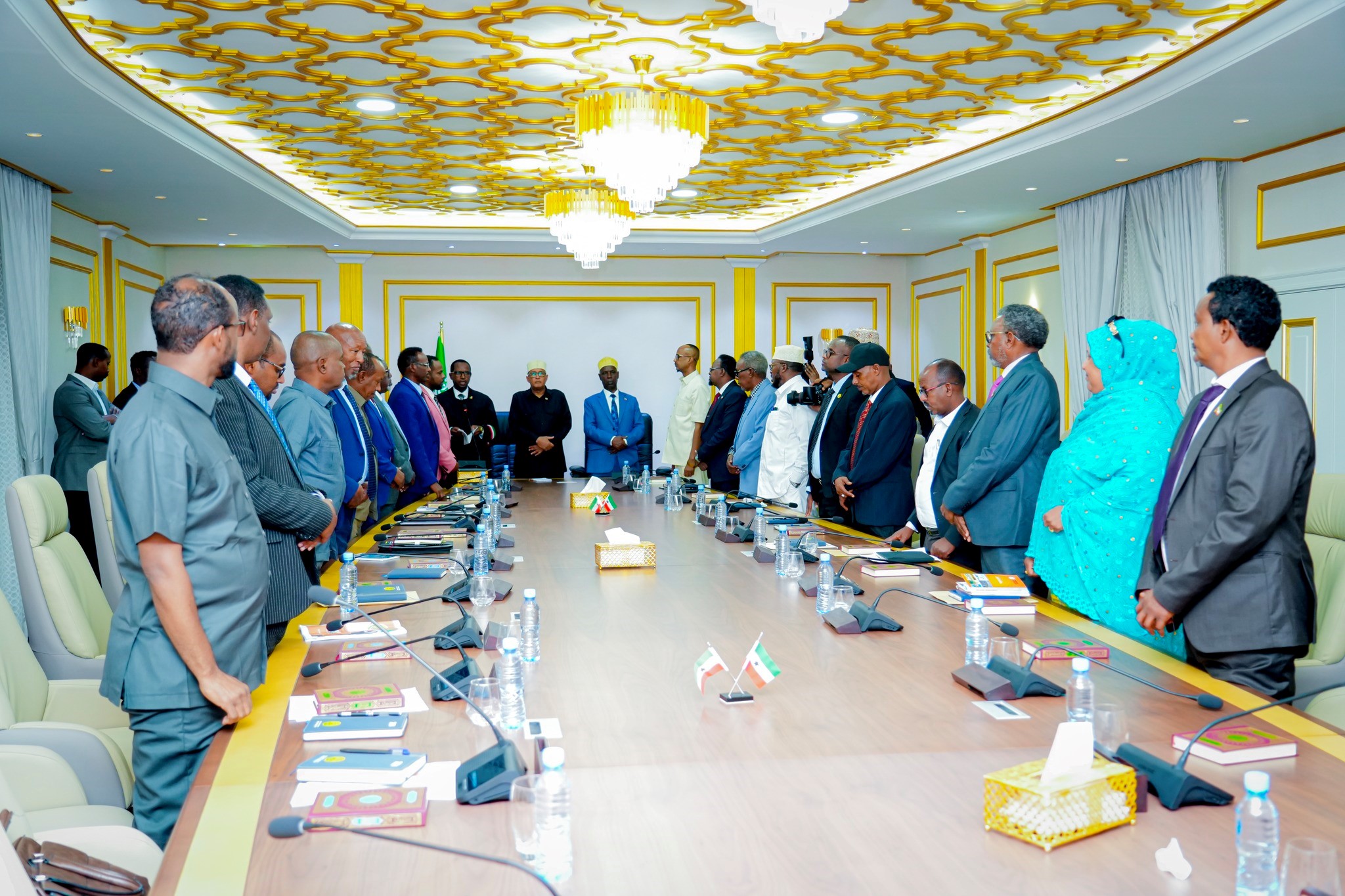 Hargeysa (Dawan)- Dhaarta Dastuuriga ah ee Golaha Wasiirrada Jamhuuriyadda Somaliland, ayaa Khamiistii dorraad oo ay taariikhdu tahay 09/01/2025 la dhaariyey dhammaan Xubnaha Golaha ee Xukuumadda WADA-JIR IYO WAX-QABAD ee uu gadhwadeenka ka yahay Madaxweynaha Qaranka Mudane Cabdiraxmaan Maxamed Cabdillaahi (Cirro), Fadhiga dhaarta Dastuuriga ah waxa goob-joog ka ahaa Madaxweynaha iyo Madaxweyne ku xigeenka iyo gudoomiyaha Maxkamada Sare.