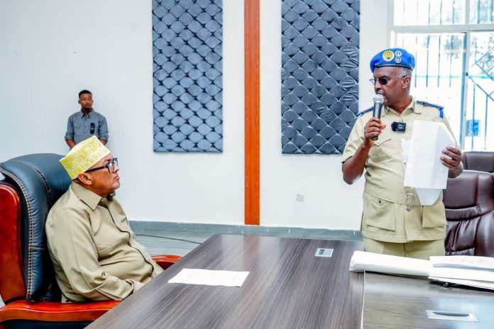 Hargaysa (Dawan)Taliyaha ciisanka Booliska Somaliland sareeye gaas Maxamed aadan Saqadhi dabagale ayaa Taliska guud ee ciidanka booliska ku soo dhaweeyey shalay madaxwaynaha Somaliland Mudane Cabdiraxmaan Maxamed Cabdillaahi Cirro oo kormeerk ku tagay xarunta taliska booliska waxana tiyuhu madaxwaynaha uga warbixiyey shaqooyinka iyo waajibaadka ay ciidanka booliiska u hayaan iyo sida ay marwalba ugu heelan yihiin sugida amniga gudaha dalka iyo sidoo kale ladagaalanka mukhaadaraadka ka soo gudba xuduudaha dalka.