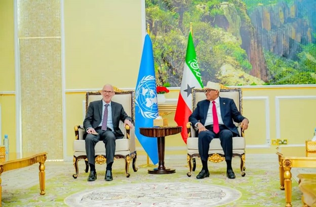 Madaxweynaha Jamhuuriyadda Somaliland Mudane Cabdiraxmaan Maxamed Cabdilaahi ayaa isaguna dhankiisa Ergeyga Xoghayaha Qaramada Midoobey uga mahad naqay safar hawleedka uu ku yimi Somaliland.