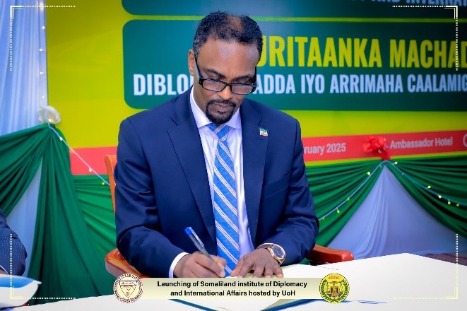 Hargaysa (Dawan) Wasiirka wasaaradda arrimaha dibedda iyo iskaashiga Caalamiga ah ee JamhuuriyaddaSomaliland, Mudane Cabdiraxmaan Daahir Aadan Bakaal, oo kaashanaya jaamacada Hargeysa, ayaa shalay siramiya u furay machadka dublamaasiyada iyo arrimaha caalamiga ah ee JSL, kaas oo lagu baran doono arrimaha la xidhiidha barashada dublamaasiyada.