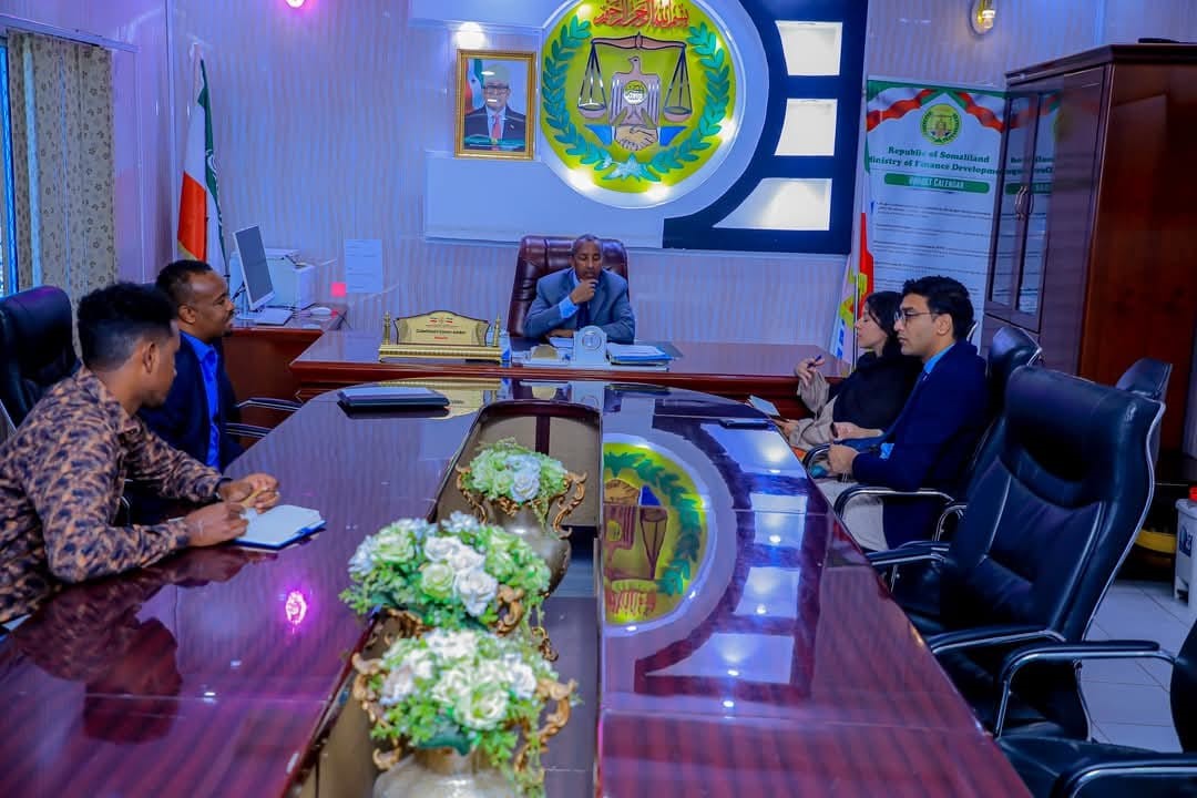 Wasiirka Wasaaradda Maaliyadda iyo Horumarinta Dhaqaalaha Jamhuuriyadda Somaliland Mudane Cabdillaahi Xasan Aaden iyo Agaasimaha Guud ee Wasaaradaasi Mudane Maxamed Xasan Saleebaan ayaa kulan shalay la qaatay Madaxa Xafiiska Dawladda Ingiriiska ee Somaliland Mr. Ilyas Malek iyo Ku-xigeenkiisa ahna Madaxa Xafiiska Mashaariicda Mss. Tatiana Feranandes.
