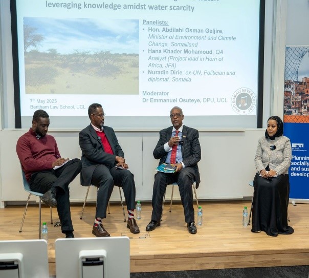 London (Dawan) Wasiirka wasaaradda Deegaanka iyo Isbedelka Cimilada JSL Mudane Cabdilahi Jaamac Cismaan Geeljire ayaa ka qayb galay shir caalimiya oo kusaabsan aqoon is weydaarsi ay soo qabanqaabisey Jamacadda UCL London-UK.