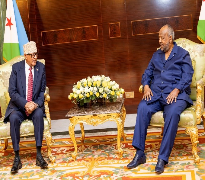 Hargeysa (Dawan)- Madaxweynaha Dalka Jabuuti Ismaaciil Cumar Geelle, ayaa qasriga Madaxtooyada dalkaas ku qaabilay Madaxweynaha Jamhuuriyadda Somaliland Cabdiraxmaan Maxamed Cabdilaahi (Cirro) iyo weftigii uu hogaaminaayey ee sicdaalka shaqo ku tagay shalay.