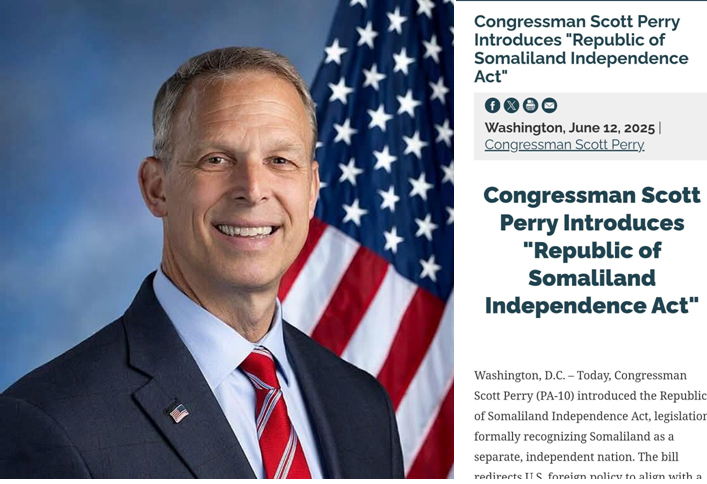Washington, D.C. (Dawan) Talaabo diblomaasiyadeed oo muhiim ah ayaa si mug iyo miisaan leh u iftiimisay suurto-galnimada aqoonsiga Jamhuuriyadda Somaliland, ka dib markii Xildhibaan Scott Perry oo ka tirsan Golaha Wakiillada ee Maraykanka, uu horgeeyay Congress-ka Xeerka Madaxbannaanida Jamhuuriyadda Somaliland. Xeerkan oo ay ujeedkiisu tahay in Somaliland loo aqoonsado dal madax-bannaan, isla markaana Maraykanku la yeesho xidhiidh toos ah oo siyaasadeed iyo mid amni.