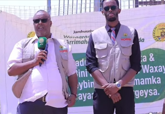 Waxaana uu yidhi”Maanta shalay Wasaaradda Dib-u-dejinta iyo arrimaha Bini’aadantinimada,waxay halkan ku qaybinaysaa oo ay ku soo xidhaysaa wajigii labaad ee biyo qaybinta Kaamamka Barokacayaasha ee Hargeysa,waxa aynu joognaa Kaamka qalax waxa aynu ugu talogalnay in uu noqdo Wajiga labaad ee lagu soo xidhayo biyo qaybinta Kaamamka Barokacayaasha Hargeysa.waxa Wasaarada soo waday muddo badan in Miisaaniyadda qaranka biyo uga dhaamiso.waana Kaamkii 8aad ee biyo u qaybino ee Magaalada Hargeysa.waxaana biyaha hore loo gaadhsiiyay Maxamed Mooge Digaale Mawle Naasahablood A iyo Naasahablood B iyo Naasa hablood C.wajiyada dambe ee biyo qaybinta waala bilaabi doonaa waxaana biyaha loogu shubayaa Kaamka Qalax meelaha danta guud ee bulshada leedahay”.