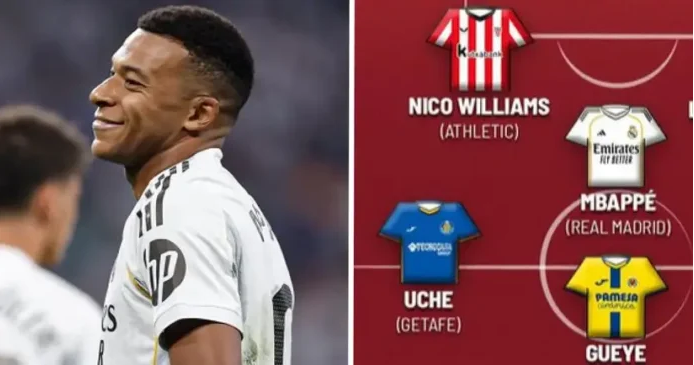 Weeraryahanka cusub ee Real Madrid Kylian Mbappe ayaa lagu soo daray Kooxda Toddobaadka ee Marca kadib kulankii furitaanka La Liga, halkaas oo Madrid ay 1-0 kaga adkaatay Osasuna. Mbappe ayaa guusha u keenay Real, kadib markii uu rigoodhe kasbaday isla markaana uu dhaliyay.