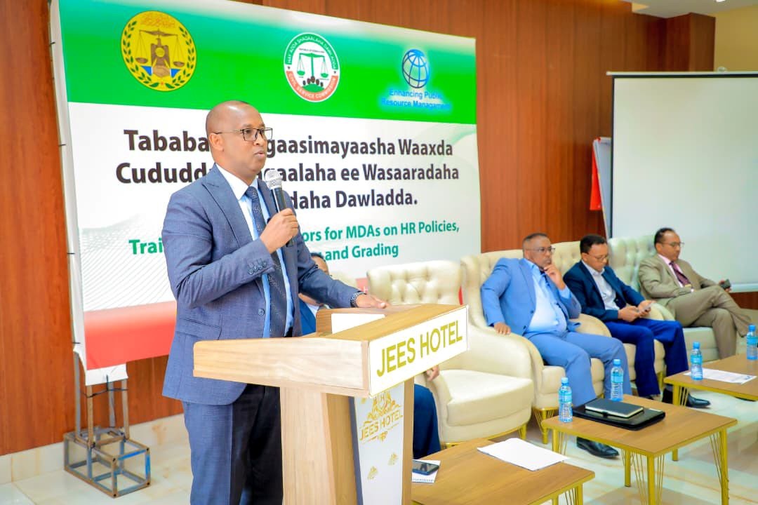 Hargeysa (Dawan)- Hay’adda Shaqaalaha Dawladda Somaliland ayaa shalay qaaday talaabo muhiimad weyn u leh horumarinta adeegga dawladda, iyada oo tababar u furtay agaasimeyaasha waaxyaha cududda shaqaalaha ee wasaaradaha iyo hay’adaha kala duwan ee qaranka. Tallaabadani waa mid muujinaysa sida ay xukuumadda Somaliland uga go’an tahay in la xoojiyo tayada iyo hufnaanta adeegyada loo fidiyo bulshada.