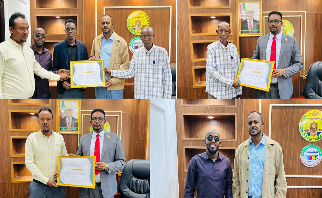 Dhinaca kale, shaqaalaha Wakaaladda Madbacadda Qaranka ayaa shahaado-sharafyo ku guddoonsiiyay Maareeyaha Guud, Mudane Cabdiraxmaan Ibraahim Aadan, iyo Maareeye Ku-xigeenka, Mudane Cabdixakiim Muuse Cali. Tallaabadan ayaa u ah hoggaan lagu kalsoon yahay oo ku sifoobay daacadnimo iyo hal-adayg, arrintaas oo mudadii ay xilka hayeen u horseeday wakaaladda horumar la taaban karo oo dhinacyada maamulka, adeeg-bixinta, iyo tayeynta shaqaalaha ah.
